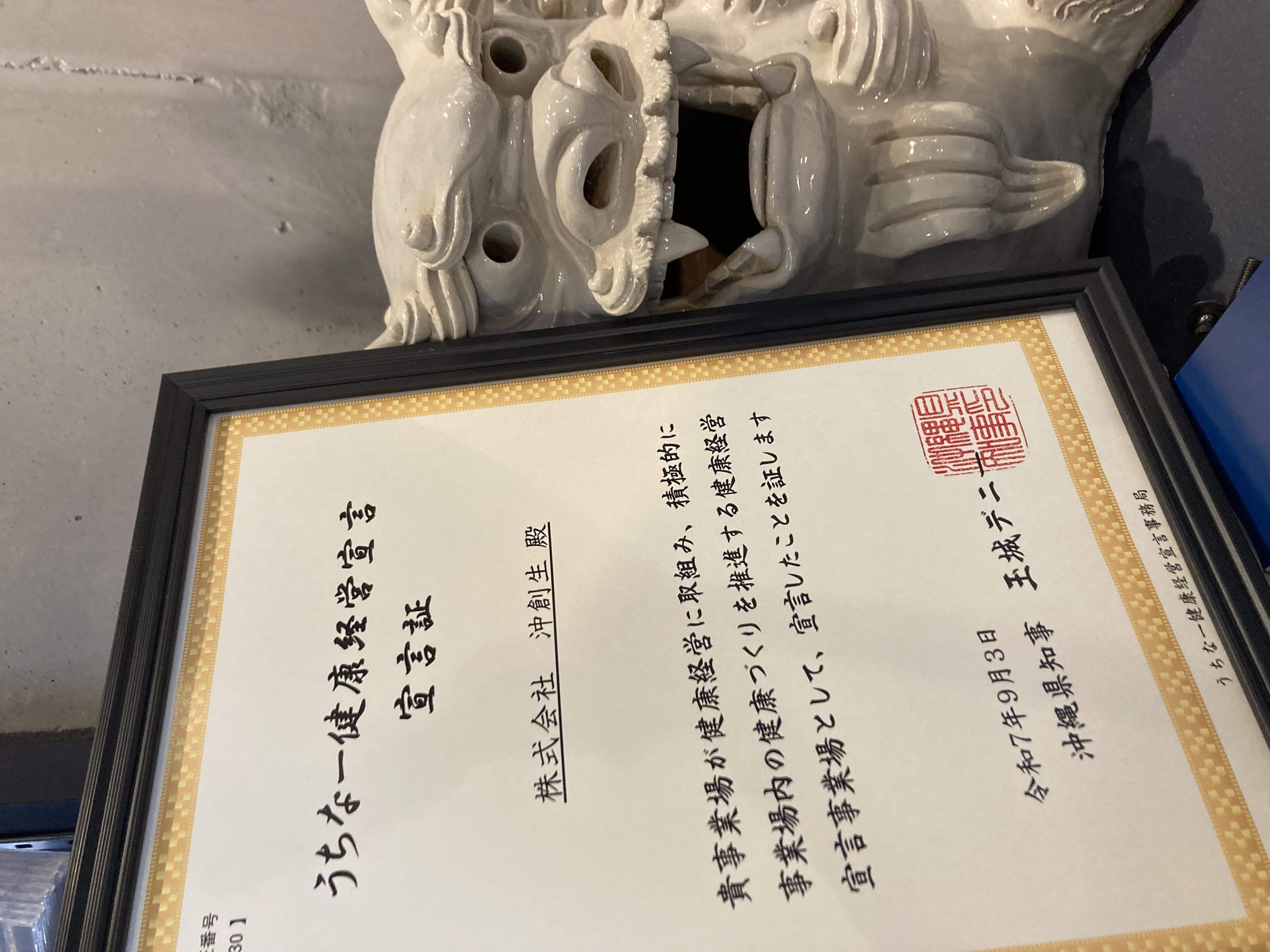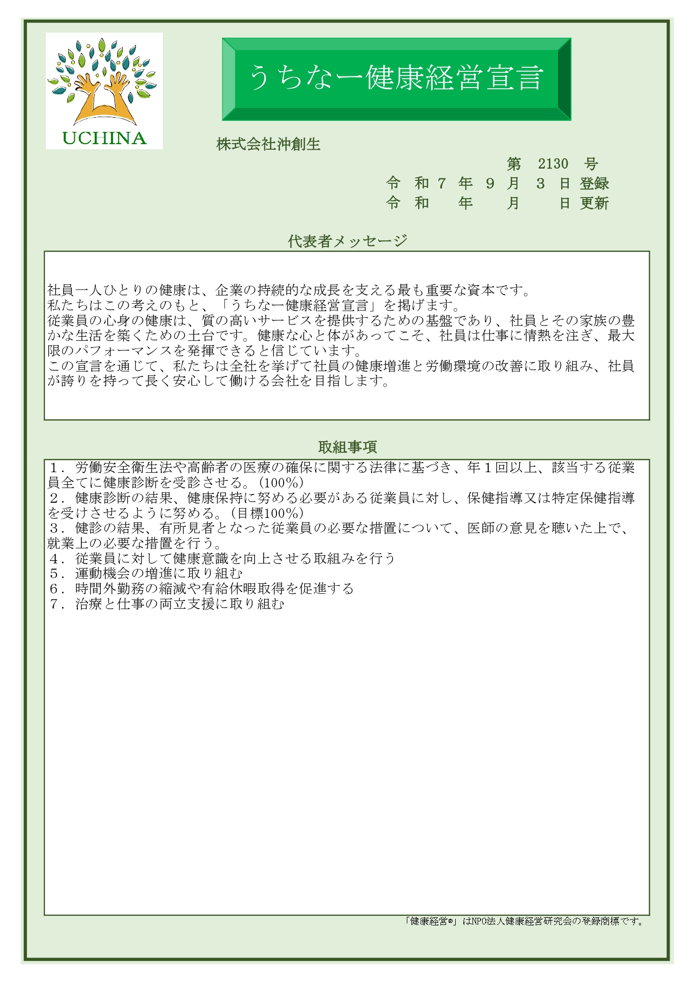 沖創生はこのたび、「うちなー健康経営宣言」を表明いたしました。